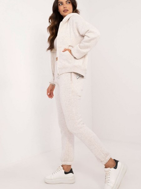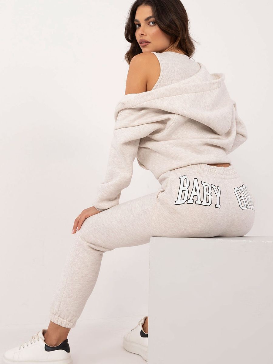 Ensemble de survêtements pour femmes, idéal pour un style décontracté et sportif au quotidien, en mélange de coton et d'élasthanne. L'ensemble se compose d'un T-shirt court à hauteur d'épaule, d'un sweat-shirt zippé avec capuche, manches longues et poches à glissière, et d'un pantalon à jambes longues avec poignets côtelés. Le pantalon a une taille haute et des poches latérales à glissière pour plus de commodité. Un imprimé subtil apparaît à l'arrière du pantalon, au niveau des fesses. L'ensemble du design est conservé dans un motif mélangé et la chaleur supplémentaire apporte du confort lors des journées plus froides. Il s'agit d'un choix confortable et élégant à porter tous les jours....