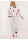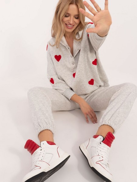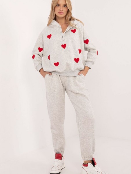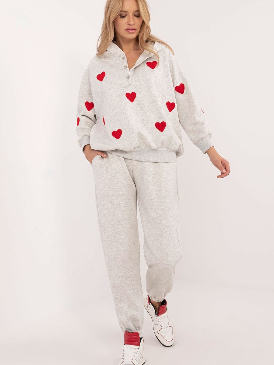 Un ensemble de survêtement pour femmes au style décontracté et chaleureux, idéal pour les sorties quotidiennes, composé d'un sweat-shirt et d'un pantalon. Composé d'une combinaison de coton et d'élasthanne, l'ensemble offre un excellent confort, de la chaleur et de la souplesse, idéal pour les jours les plus froids. Le pantalon a des jambes longues avec des bordures côtelées pour un ajustement confortable, tandis que la taille haute avec un lien à la taille accentue la silhouette et fournit un ajustement supplémentaire. De plus, les poches latérales à glissière sont une solution pratique pour les petits objets. Le sweat-shirt à manches longues se ferme à mi-chemin par des boutons-pression, ce qui ajoute une touche de style et de confort. Il est également doté d'une capuche, parfaite pour les journées fraîches, et d'adorables patchs en forme de cœur qui ajoutent une touche unique et tendance au sweat-shirt. Cet ensemble isolé est la combinaison parfaite de confort, de style et de fonctionnalité pour un usage quotidien.