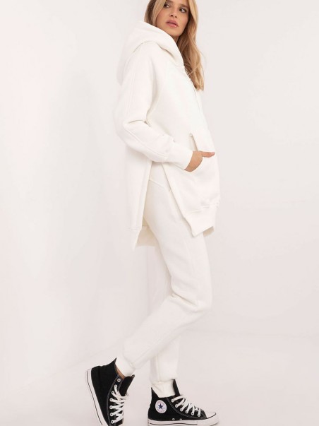 Ensemble de survêtement pour femme de style décontracté, idéal pour les sorties quotidiennes, composé d'un sweat à capuche et d'un pantalon. Fabriqué en mélange de coton et d'élasthanne, il offre confort, douceur et liberté de mouvement grâce aux propriétés élastiques du matériau. Le sweat a des manches longues, se ferme par une fermeture éclair et possède des poches plaquées sur le devant, ce qui lui confère praticité et style sportif. Le sweat est également équipé d'une capuche qui assure une protection supplémentaire contre le froid, et son motif lisse lui donne un aspect classique et élégant. Le pantalon à jambes longues avec des poignets élastiques a une taille haute qui met en valeur la silhouette et garantit un ajustement confortable. La taille est dotée d'une bande élastique qui assure un confort et un maintien parfait du pantalon. Les poches latérales dans le pantalon sont pratiques et fonctionnelles. Cet ensemble est un mélange de confort, de style et de praticité, parfait pour des tenues décontractées au quotidien.