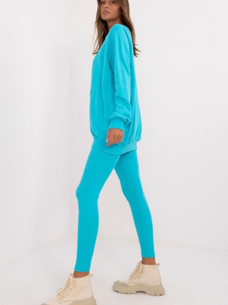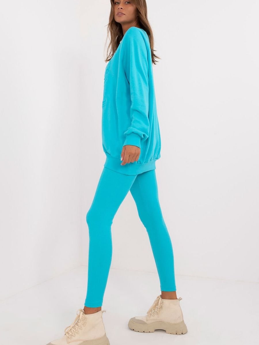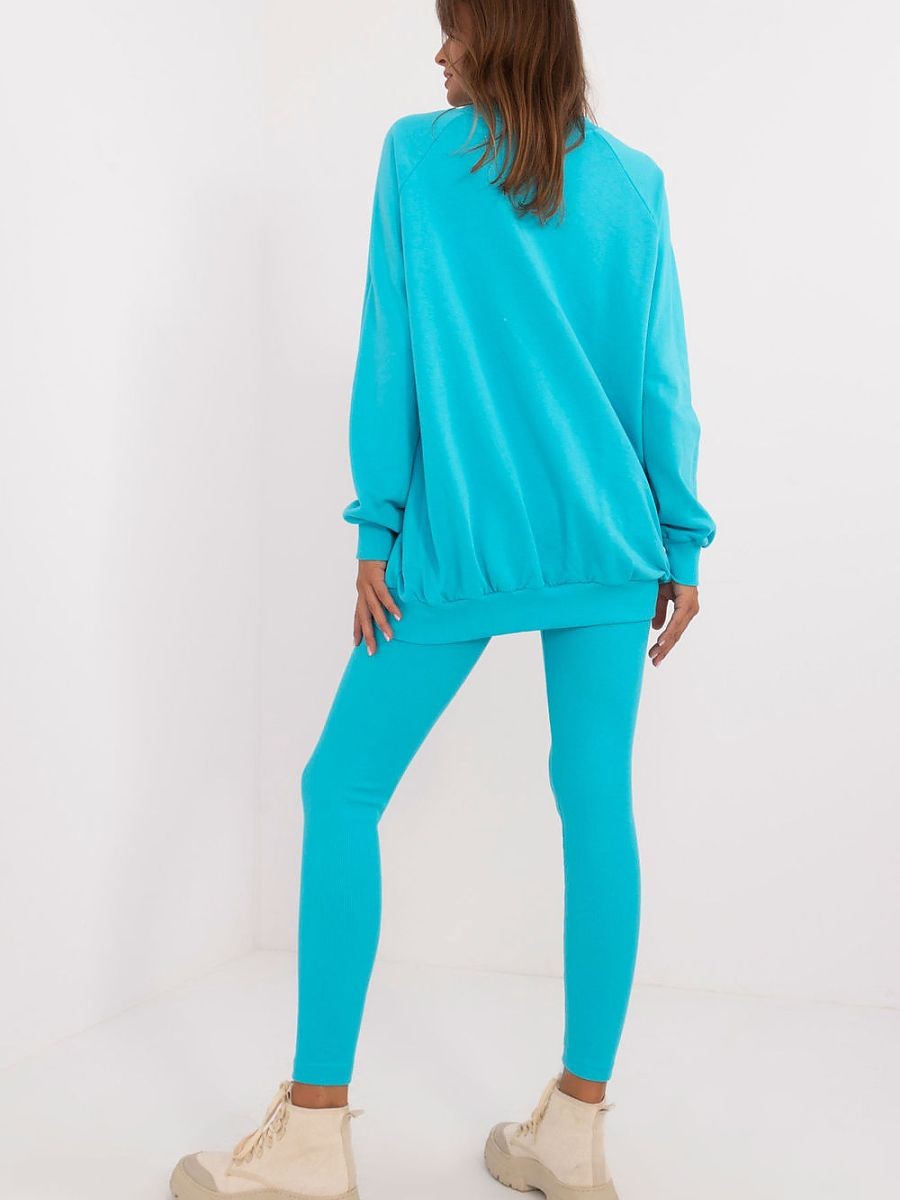 Un ensemble pour femmes composé d'un legging et d'un sweat-shirt, idéal pour un style décontracté de tous les jours. Fabriqué en coton de haute qualité avec ajout d'élasthanne, il assure un ajustement confortable et une coupe ajustée. Le legging aux jambes fuselées, au tissu côtelé et à la taille haute, souligne la silhouette tout en offrant confort et liberté de mouvement. Le sweat-shirt à manches longues et encolure ronde est orné d'une image en relief sur le devant, ce qui ajoute une touche originale à l'ensemble. Le motif lisse domine l'ensemble, ce qui en fait un choix polyvalent pour toutes les occasions de la vie quotidienne.