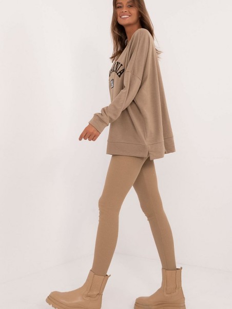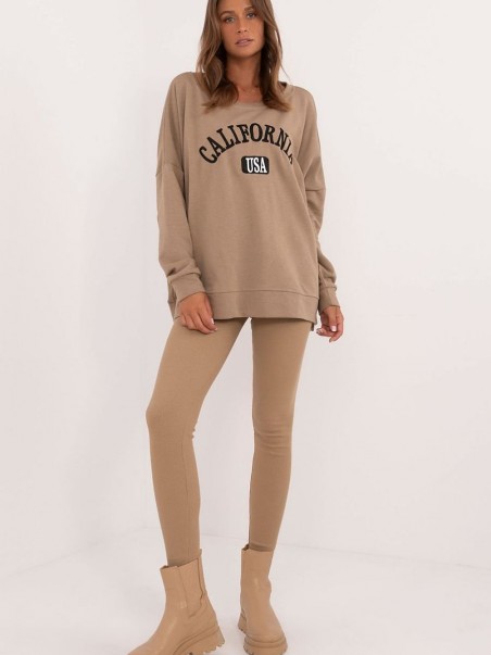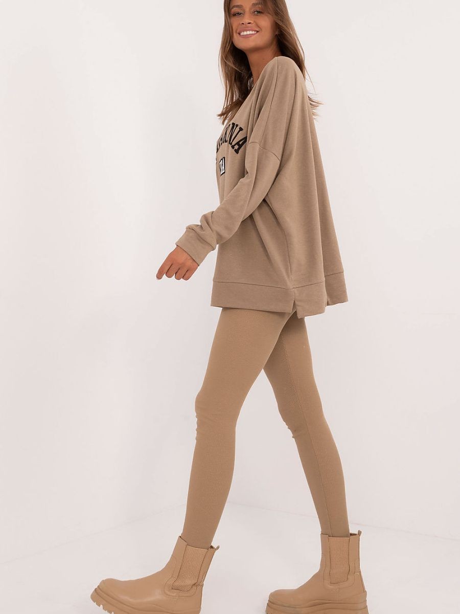 Un ensemble décontracté pour femme composé d'un sweat-shirt et d'un legging, idéal pour les occasions de tous les jours. Le sweat-shirt à coupe longue présente un imprimé avec des lettres sur le devant, ce qui ajoute une touche de modernité au style. Le legging confortable, en tissu côtelé, est parfaitement ajusté, tandis que les jambes fuselées et la taille haute soulignent la silhouette et assurent le confort. Le chemisier à manches longues et encolure ronde apporte chaleur et liberté de mouvement. Cet ensemble est un excellent choix pour les femmes qui apprécient le confort et le style au quotidien.