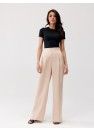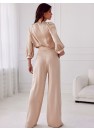 Le pantalon Elsa est fabriqué à partir d'un tissu satiné doux qui offre un confort incroyable lorsqu'il est porté, mais qui ajoute également une touche d'élégance à n'importe quel look. Le pantalon a des jambes amples et larges, ce qui lui confère un caractère moderne et à la mode. La taille haute et la large ceinture intégrée soulignent joliment la taille, ce qui affine optiquement la silhouette. Les poches sur les côtés et la fermeture éclair intégrée dans le côté du pantalon le rendent non seulement élégant mais aussi pratique. Le pantalon Elsa est le choix idéal pour toute une série d'occasions, des réunions d'affaires formelles aux sorties en soirée. Il peut être parfaitement associé à une chemise élégante et à des talons aiguilles pour des réunions plus formelles, ou à un pull décontracté et à des baskets pour des occasions plus décontractées.