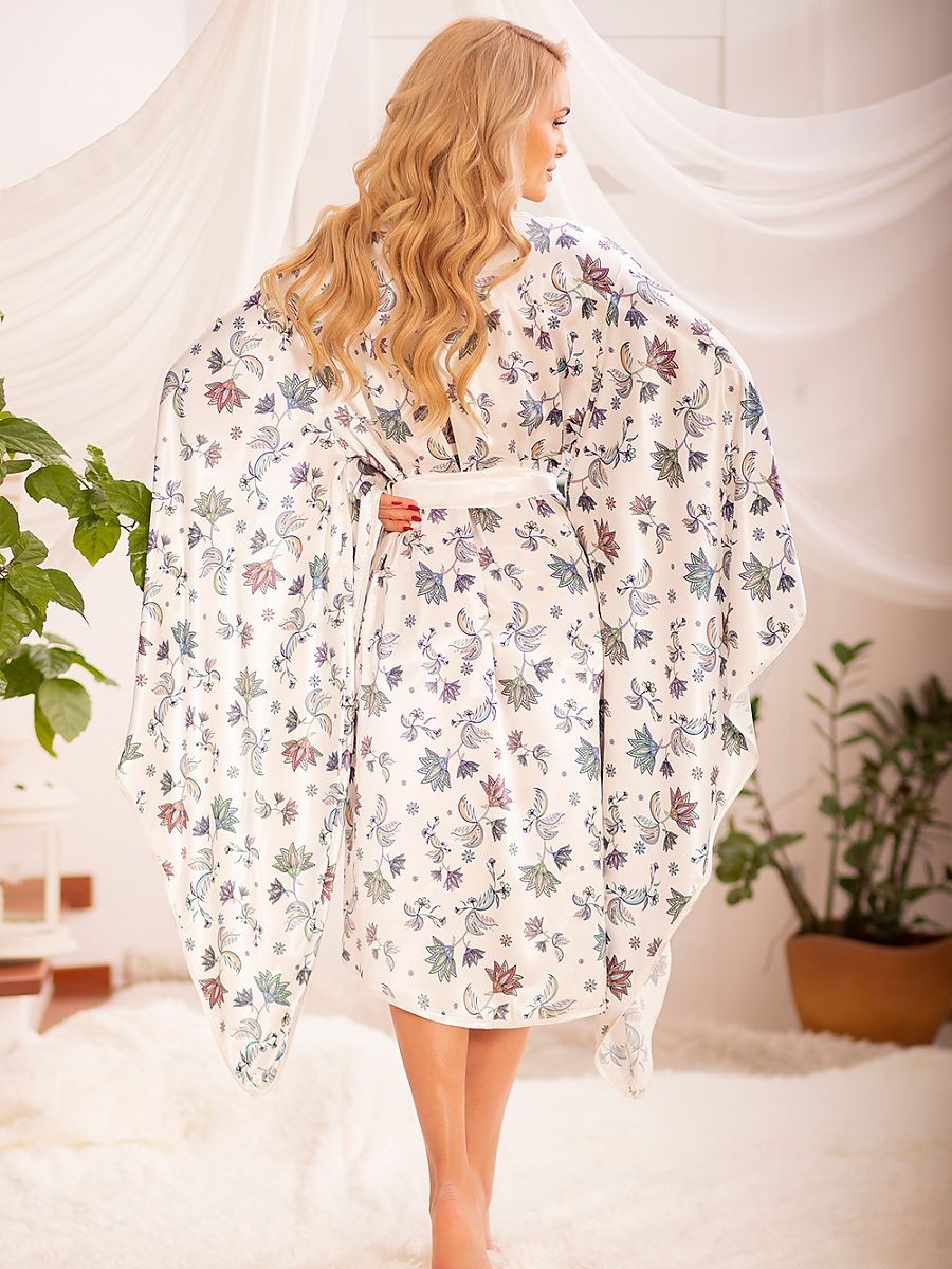 Imaginez un chaud matin de printemps ou même d'été, l'herbe baignée de rosée matinale reflète les rayons du soleil et vous, vêtue d'un déshabillé coloré et délicat, ouvrez la fenêtre de votre chambre ? Cette ambiance sera sans doute renforcée par le déshabillé en satin Hulhule, dont le tissu a également été conçu par des amis de Kalimo. Le déshabillé est conçu pour donner une impression de légèreté et de dignité, afin que vous puissiez vous sentir comme un papillon coloré. Serez-vous enchanté ? Les manches larges qui arrivent à mi-mollet attirent l'attention. Vous pouvez également utiliser ce couvre-chef comme couvre-maillot de bain pour les vacances. Les sous-vêtements sont emballés dans une belle et grande boîte (idéale pour un cadeau).