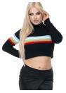 Pull court à col roulé en côte. Pull avec des rayures arc-en-ciel, en fil doux.