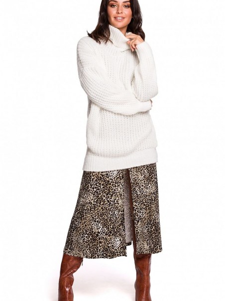 Le col roulé haut et la coupe oversize de ce pull mi-cuisse vous apportent confort et chaleur. Il peut être porté avec un pantalon ou une robe et les manches peuvent être retroussées ou abaissées à volonté.