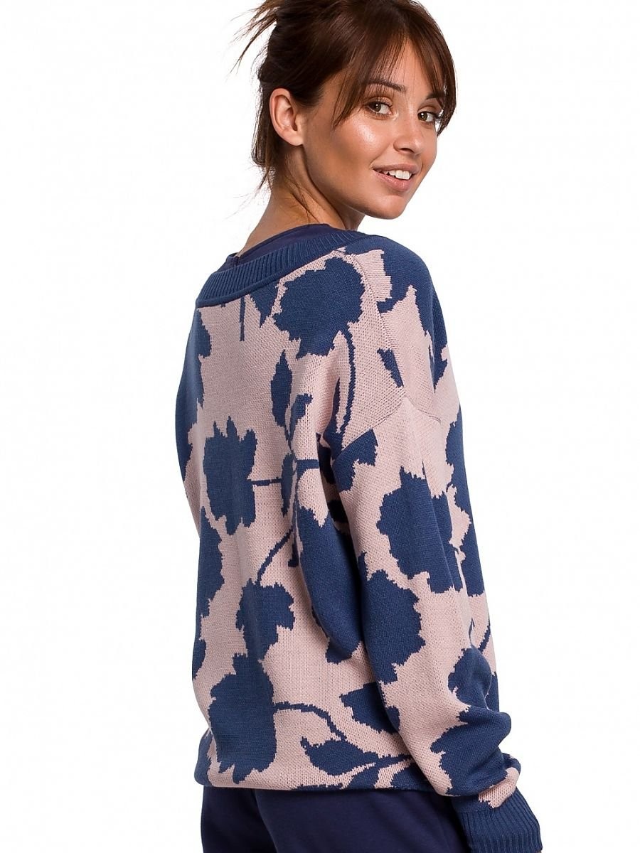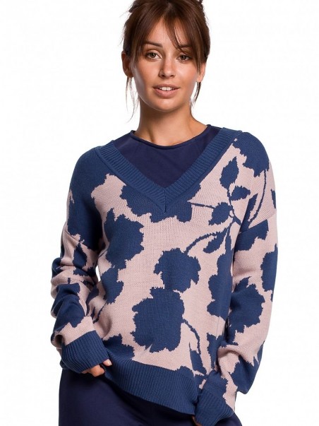 Élégant et stylé. Pull léger avec une encolure en V et un motif floral unique dans une combinaison de couleurs intéressante.