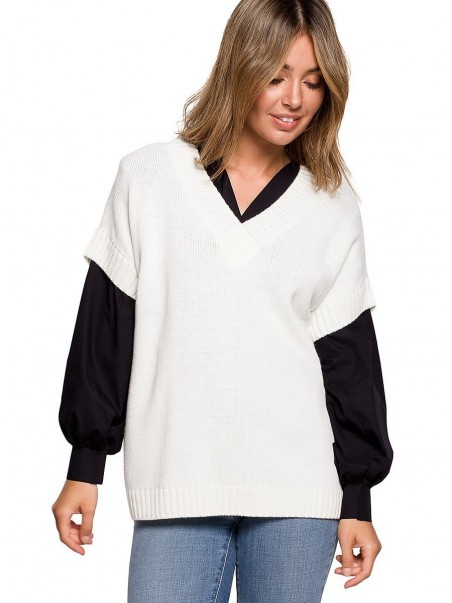 Un tricot sans manches à la coupe ample complètera votre look professionnel. Avec une chemise élégante et un jean classique, il créera une tenue intéressante pour le travail et au-delà. Essayez de le combiner avec d'autres éléments de votre garde-robe.