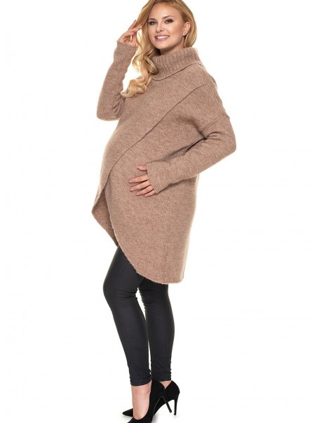 Une veste en laine douce et moelleuse. Doux et moelleux, avec un ajout de laine. Coupe asymétrique, devant replié. Pull poilu avec un col roulé ample. Convient à la fois pour la grossesse et pour plus tard. Idéal pour l'allaitement.