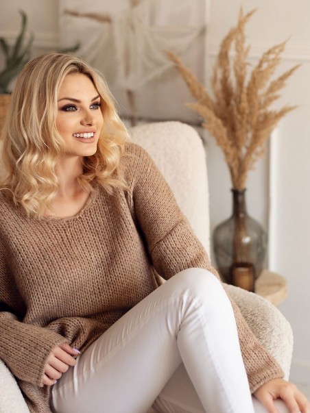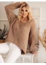 Pull ample et oversize avec des manches longues et une encolure en forme de cœur. Bas avec coupe asymétrique.