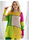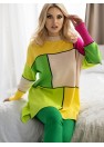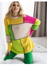 Pull-over ample à manches longues, rentré sur la tête. Dos du pull légèrement plus long. Pull avec motif coloré.