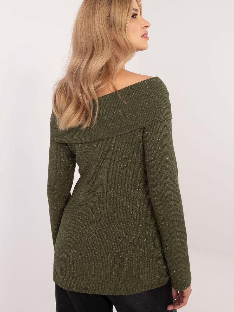 Un pull pour femme élégant, idéal à la fois pour tous les jours et pour le travail. Fabriqué à partir d'un mélange de viscose et d'élasthanne de haute qualité, il garantit un confort de port et un ajustement parfait. Le pull a une texture côtelée variée qui lui donne du caractère et une élégance subtile. Il a des manches longues et un décolleté de style espagnol qui met en valeur les épaules de manière spectaculaire, donnant à la tenue une touche de féminité. De plus, le fil brillant sur la surface du tissu ajoute une touche de douceur et d'élégance. C'est un choix parfait pour les femmes qui apprécient le confort et l'élégance dans leurs tenues du quotidien.