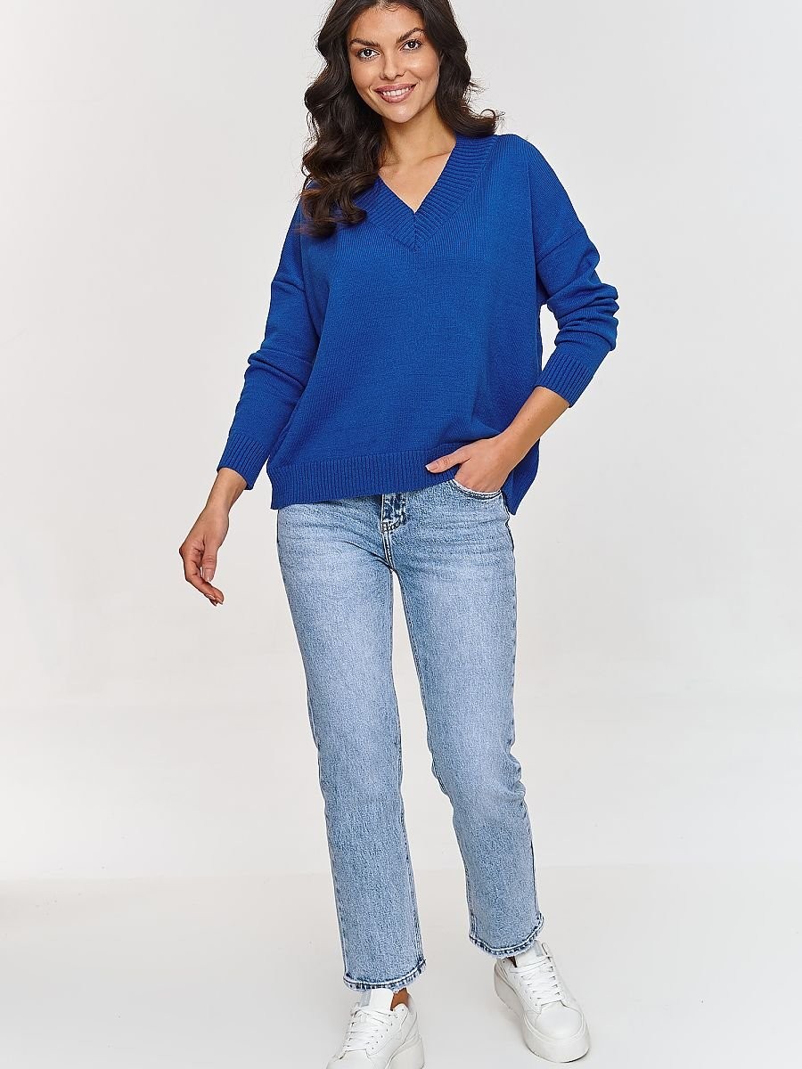 Ce pull basique est un choix parfait pour les personnes à la recherche de vêtements intemporels alliant élégance et confort. Fabriqué en viscose de haute qualité avec ajout de PBT, il garantit non seulement un grand confort de port, mais aussi une durabilité exceptionnelle et une résistance aux plis. Le décolleté en V met subtilement en valeur le cou, donnant à l'ensemble un caractère léger et élégant, tandis que la coupe ample et les manches longues en font un élément confortable de la garde-robe. Les bord-côtes aux poignets et en bas ajoutent une touche moderne et assurent que le pull garde bien sa forme. La viscose est un matériau doux pour la peau, respirant et agréable au toucher, idéal pour toutes les saisons. Quant au PBT (polybutylène téréphtalate), c'est une fibre synthétique qui augmente l'élasticité du matériau, améliorant sa résistance à l'étirement et aux plis. Grâce au PBT, le pull garde sa forme plus longtemps et est facile à entretenir. Grâce à la combinaison du décolleté en V élégant et du matériau élastique, le pull est très polyvalent. Vous pouvez le porter avec un jean, une jupe ou un pantalon élégant, créant des tenues décontractées ou plus formelles.