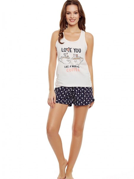 Pyjama imprimé rose et bleu marine. Livré avec une chemise à bretelles et un short à taille élastique. Matériau doux et délicat. Pyjamas parfaits pour l'été.