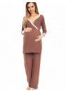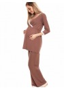 Pyjamas de maternité et d'allaitement. Pantalon avec panneau non compressé. Pantalons à jambes larges. Peut également être porté après une grossesse. Chemisier avec bordure en dentelle.