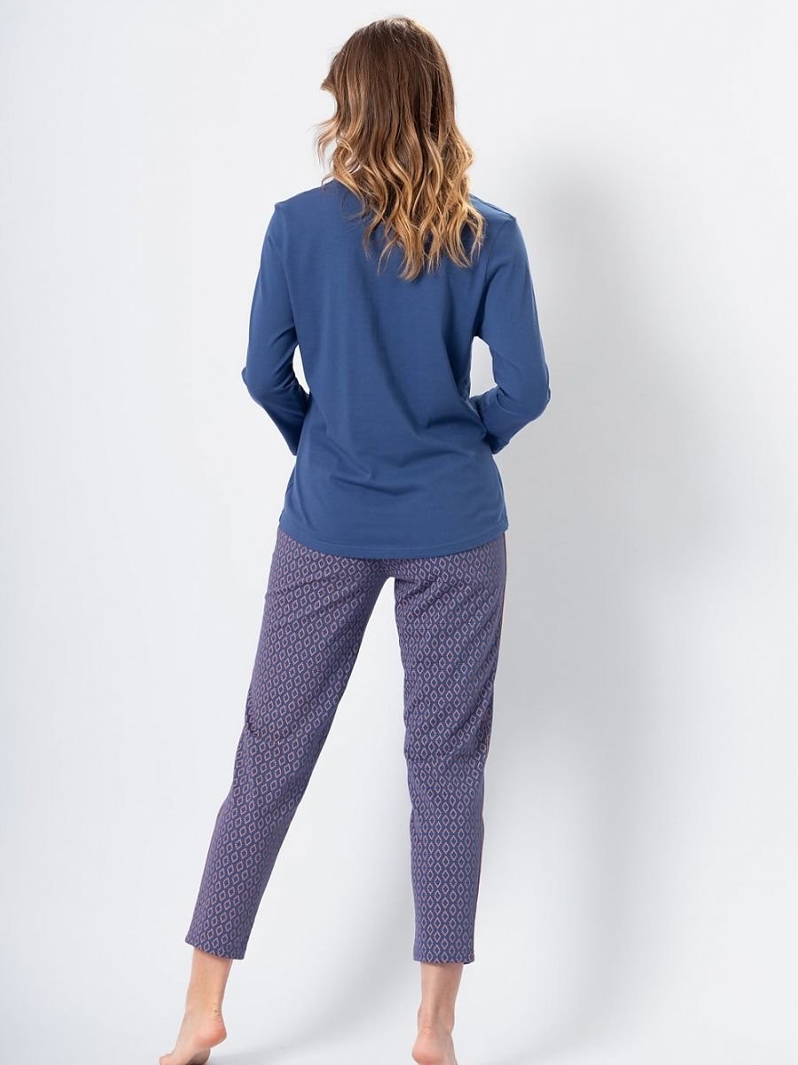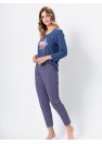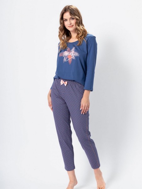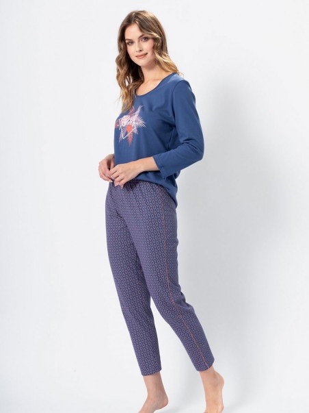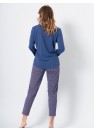 Délicatesse et féminité en une seule composition, c'est le pyjama pour femme Kornelia ! Ce pyjama est unique et extrêmement frappant. Il présente des manches 7/8 et une encolure ronde. La poitrine est ornée d'un imprimé coloré qui égaie l'ensemble de la composition. La blouse du pyjama a été confectionnée dans un tissu tricoté de couleur denim foncé, créant une merveilleuse combinaison avec le pantalon au motif géométrique subtil. Le pantalon a une longueur confortable de 7/8, et un passepoil contrastant a été ajouté le long des jambes pour donner à cette composition son caractère unique. Un nœud décoratif a été placé à la taille, ce qui ajoute au charme de l'ensemble. Le pyjama Kornelia a été cousu à partir d'un coton de haute qualité (100 %), ce qui garantit le confort et le plaisir de le porter. Cette proposition est une combinaison d'un style saisissant et féminin et de détails uniques, ce qui la différencie des autres pyjamas. Soyez unique et assurez votre confort nocturne en choisissant le pyjama Kornelia !