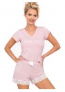 Bienvenue dans un monde douillet de détente et de confort grâce à nos pyjamas uniques pour femmes. Ce pyjama se compose d'un chemisier doux à manches courtes, qui se distingue par sa décoration subtile, le lettrage sur le devant, qui ajoute une touche d'originalité. L'encolure en V apporte délicatesse et féminité. Le bas du short pyjama est décoré d'une délicate dentelle qui apporte subtilité et charme féminin. Le short est court, offrant une grande liberté de mouvement et confortable à porter. La coupe ample et confortable vous permettra de vous sentir à l'aise et confortable tout au long de la nuit. Ce pyjama est fabriqué dans un tissu de haute qualité, doux et respirant, pour que vous vous sentiez agréable et fraîche pendant votre sommeil. En outre, comme il s'agit d'un produit polonais, vous pouvez être sûr de sa solidité et de sa fabrication soignée. Les shorts de pyjama sont dépourvus de poches, ce qui les rend plus élégants et minimalistes. Ses couleurs discrètes lui confèrent une grande polyvalence et lui permettent de s'associer facilement à différentes tenues. La taille élastiquée assure un ajustement parfait à votre silhouette, et un nœud décoratif ajoute charme et douceur à l'ensemble. Fabriqué en viscose douce, ce pyjama est non seulement très agréable sur la peau, mais aussi facile à entretenir. Profitez des soirées fraîches pour vous détendre dans le confort de votre maison tout en bénéficiant d'un confort et d'un style exceptionnels.