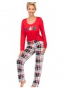 Pyjama femme à caractère festif, idéale pour offrir en cadeau et pour être portée comme un vêtement d'intérieur confortable. Le haut à manches longues et col rond est orné d'un message qui lui donne tout son charme. La coupe ample et confortable du haut ainsi que le tissu doux et aéré assurent un grand confort lors du port. Le pantalon long est à motif de carreaux classiques, avec une taille élastique et un nœud décoratif garantissant un ajustement parfait. L'absence de poches souligne la légèreté du style. Conçue et fabriquée en Pologne avec soin pour les détails, ce pyjama se distingue par sa haute qualité de fabrication.
