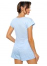 Cette charmante pyjama est une proposition pour les femmes qui apprécient le confort et les matériaux naturels. Fabriqué en coton doux et respirant, le pyjama est très agréable au toucher et assure un confort pendant le sommeil. Le chemisier lisse et bleu avec un décolleté en V est un classique qui ne se démode jamais. Le décolleté en cœur souligne le cou et ajoute de la féminité. La manche courte est parfaite pour les nuits chaudes. Les shorts courts avec un motif à pois à la mode sont un mélange parfait de confort et de style. Le nœud décoratif à la taille leur ajoute du charme et un caractère féminin. La taille élastique assure un ajustement parfait, et la coupe ample ne limite pas les mouvements pendant le sommeil. Ce pyjama en coton est un incontournable dans la garde-robe de toute femme qui apprécie le confort et les matériaux naturels. Son apparence charmante et ses détails pratiques en font un choix idéal pour de nombreuses nuits.