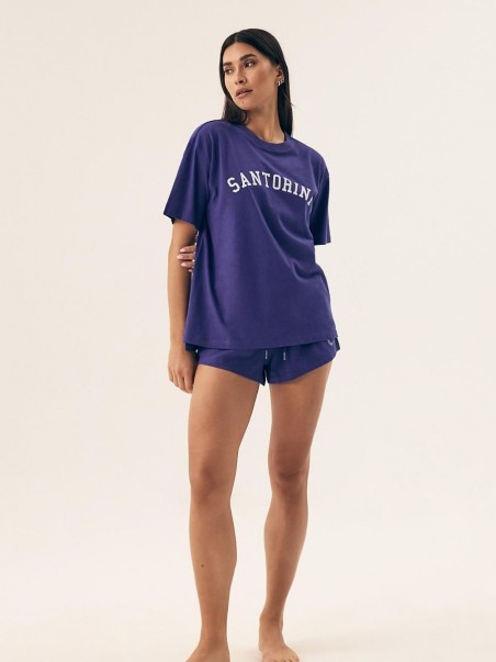 Pyjama femme idéal à la fois pour dormir et pour se détendre à la maison en tant que vêtement d'intérieur. Le haut avec un décolleté arrondi, dans une coupe ample et confortable, se marie parfaitement avec le short, qui a une large ceinture élastique et des cordons supplémentaires pour un ajustement parfait. Les shorts sont sans poches, ce qui leur donne un look minimaliste et élégant. Le tout emballé dans un sac en plastique pratique, idéal pour un cadeau ou un confort quotidien.