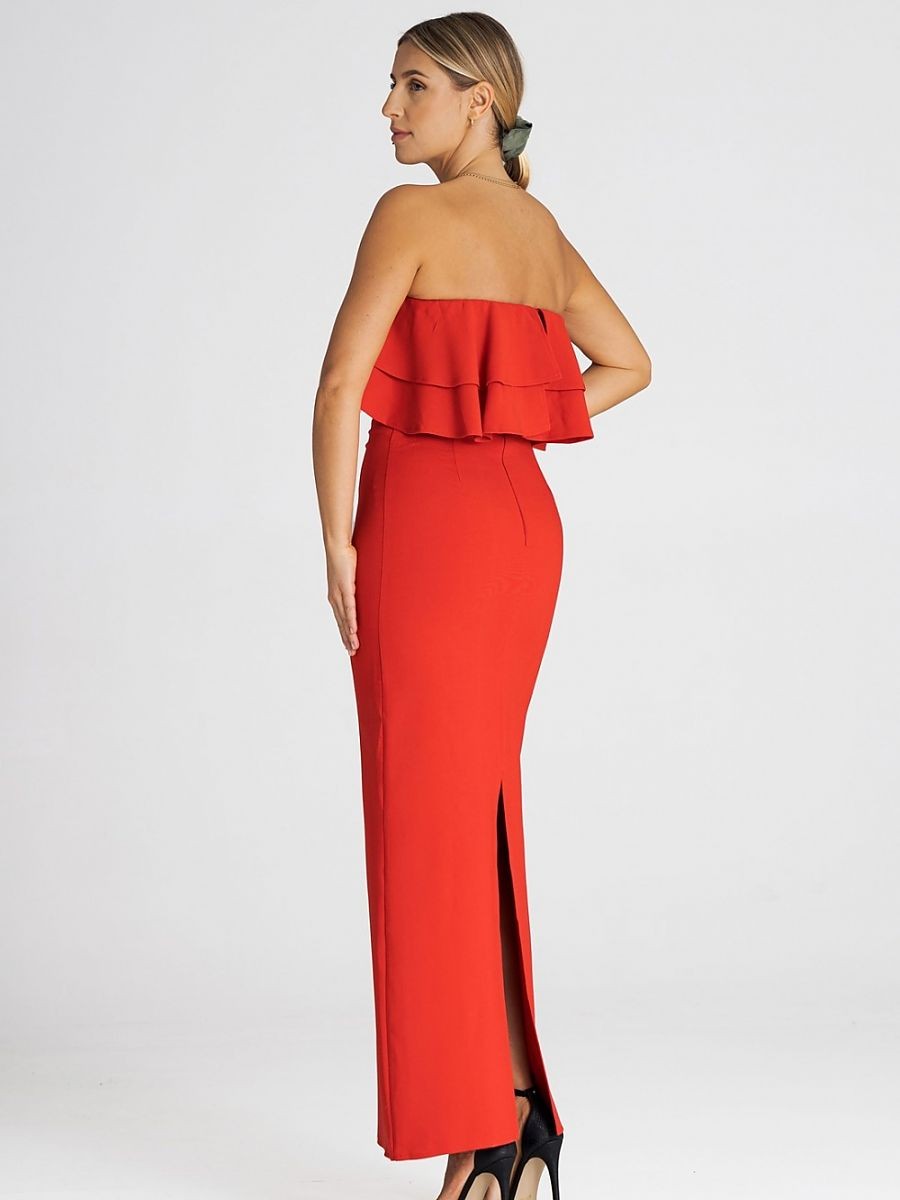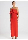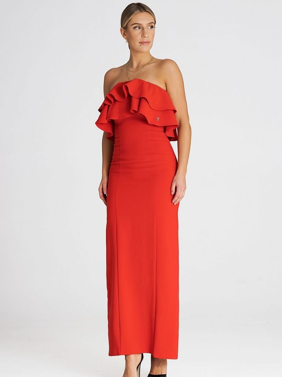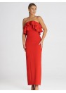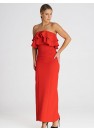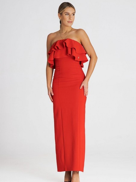 Robe longue élégante, sans manches, avec un double volant à l'encolure. Une proposition intéressante pour de nombreuses occasions.