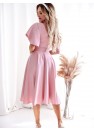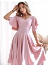 Une élégante robe dans une nuance de rose sale est une proposition idéale pour des occasions spéciales. Fabriquée à partir de matériaux de haute qualité, elle épouse parfaitement la silhouette, mettant en valeur ses atouts. Le modèle a un décolleté en forme de V, qui met subtilement en valeur le cou et les clavicules. Les manches à la coupe ample et volantée ajoutent de la légèreté et un caractère romantique à la robe. La taille est soulignée par une ceinture décorative avec des ornements délicats, ce qui met en valeur la silhouette. Le bas évasé donne à la tenue de la légèreté et de l'élégance. La robe se ferme par une fermeture éclair dissimulée, assurant ainsi un confort de port et un ajustement parfait. Parfaite pour les mariages, les réceptions, les baptêmes et autres événements élégants.
