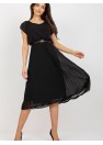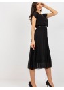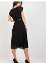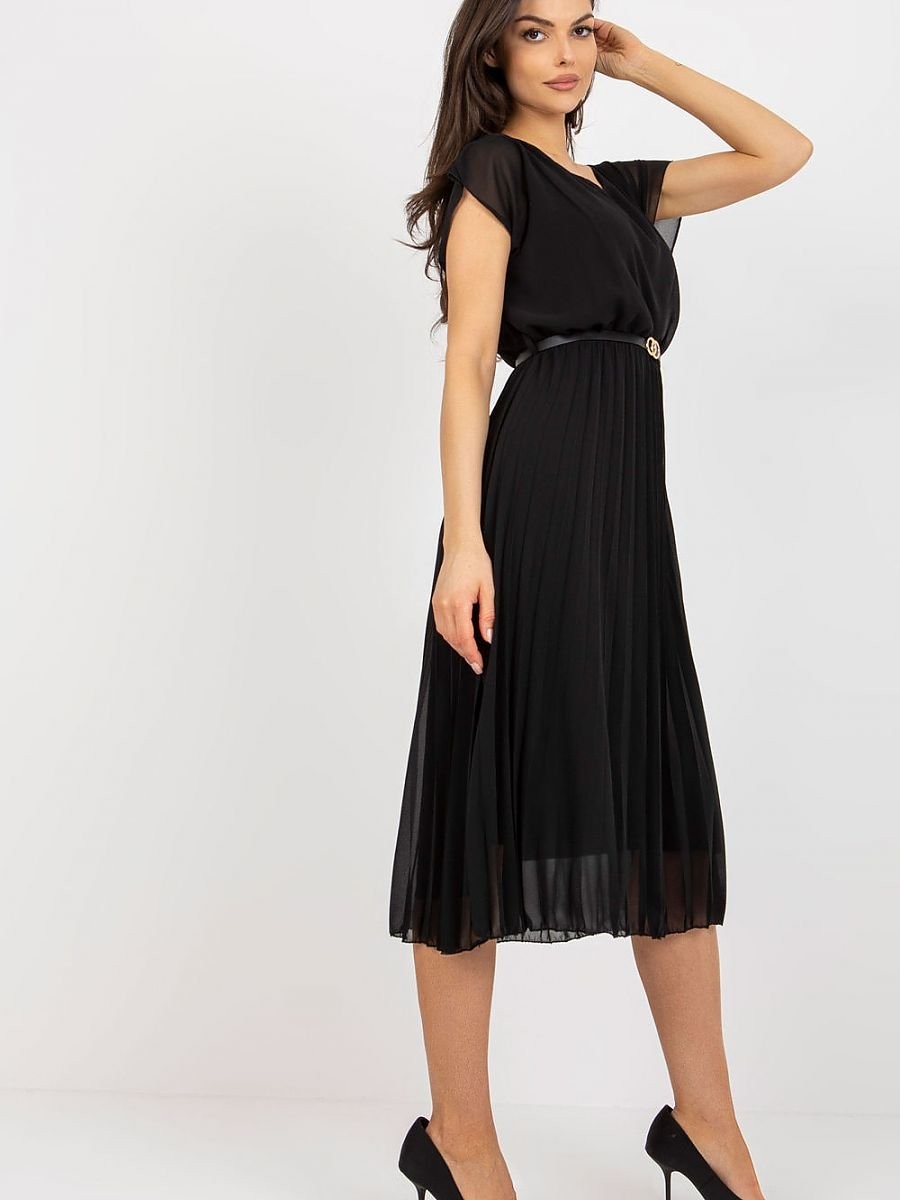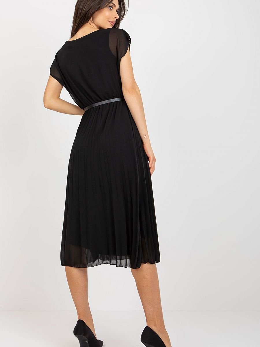 Robe de soirée à manches courtes et encolure ronde. Une ceinture noire à la taille complète le look. La robe est plissée à partir de la taille. Une proposition idéale pour de nombreuses occasions.