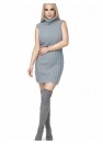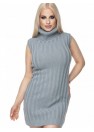 Mini-robe en tricot sans manches. Robe avec un large motif côtelé. La robe a un col roulé. Coupe intéressante, idéale pour de nombreuses occasions.