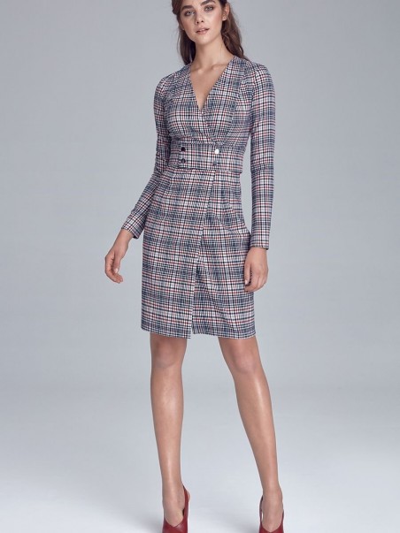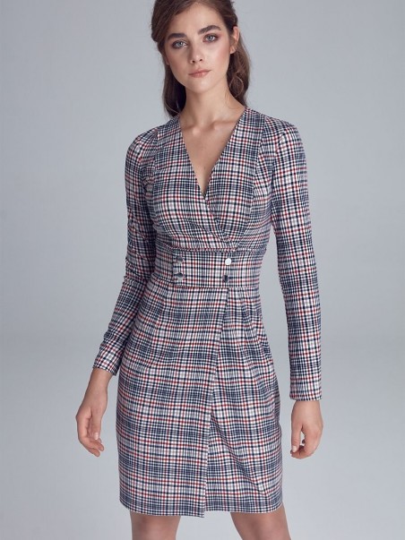 HIT de la collection d'automne ! Robe de mannequin, coupée sous le buste par une ceinture ornée de boutons pression. Le modèle présente un décolleté enveloppe qui souligne subtilement la poitrine. Cette robe est parfaite pour le travail quotidien et toutes sortes de sorties. Le modèle est fabriqué dans un matériau doux et agréable au toucher. La robe est non doublée, avec une fermeture éclair sur le côté.