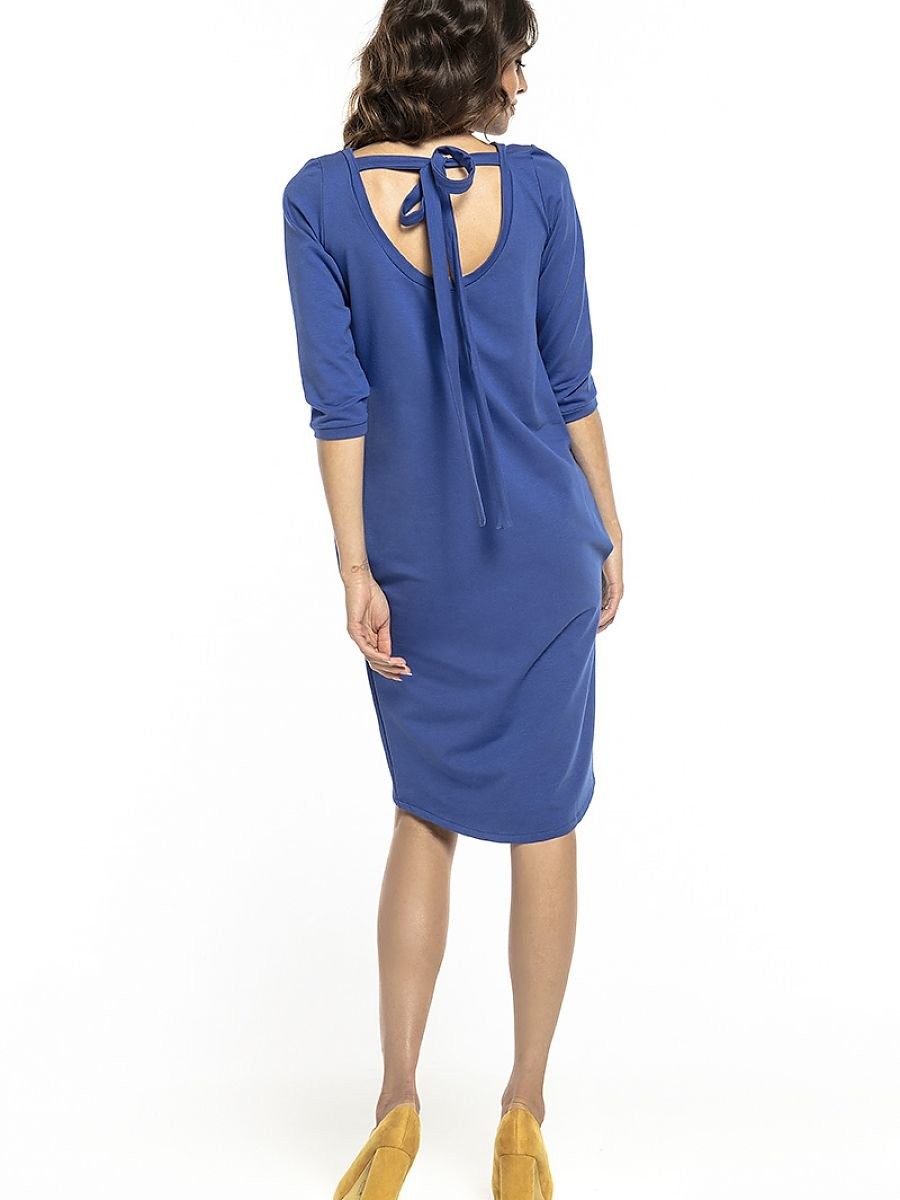 Robe tuba ample avec des poches dans la couture de la hanche. Décolleté au dos avec un joli lien. Dos allongé de la robe. Manches 3/4 terminées par un délicat revers. Notre proposition pour les femmes qui aiment la liberté et l'élégance en même temps.