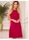 Modeste robe rouge trapèze à plis asymétriques. Marque numoco.