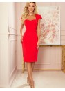 Robe midi avec un joli décolleté et des manches courtes en rouge. Classique et élégant. Fabriqué en Pologne.