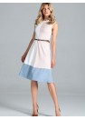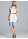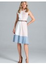 Robe midi tricolore, sans manches, légèrement cintrée, encolure ronde, fermeture à l'arrière par un zip couvert.