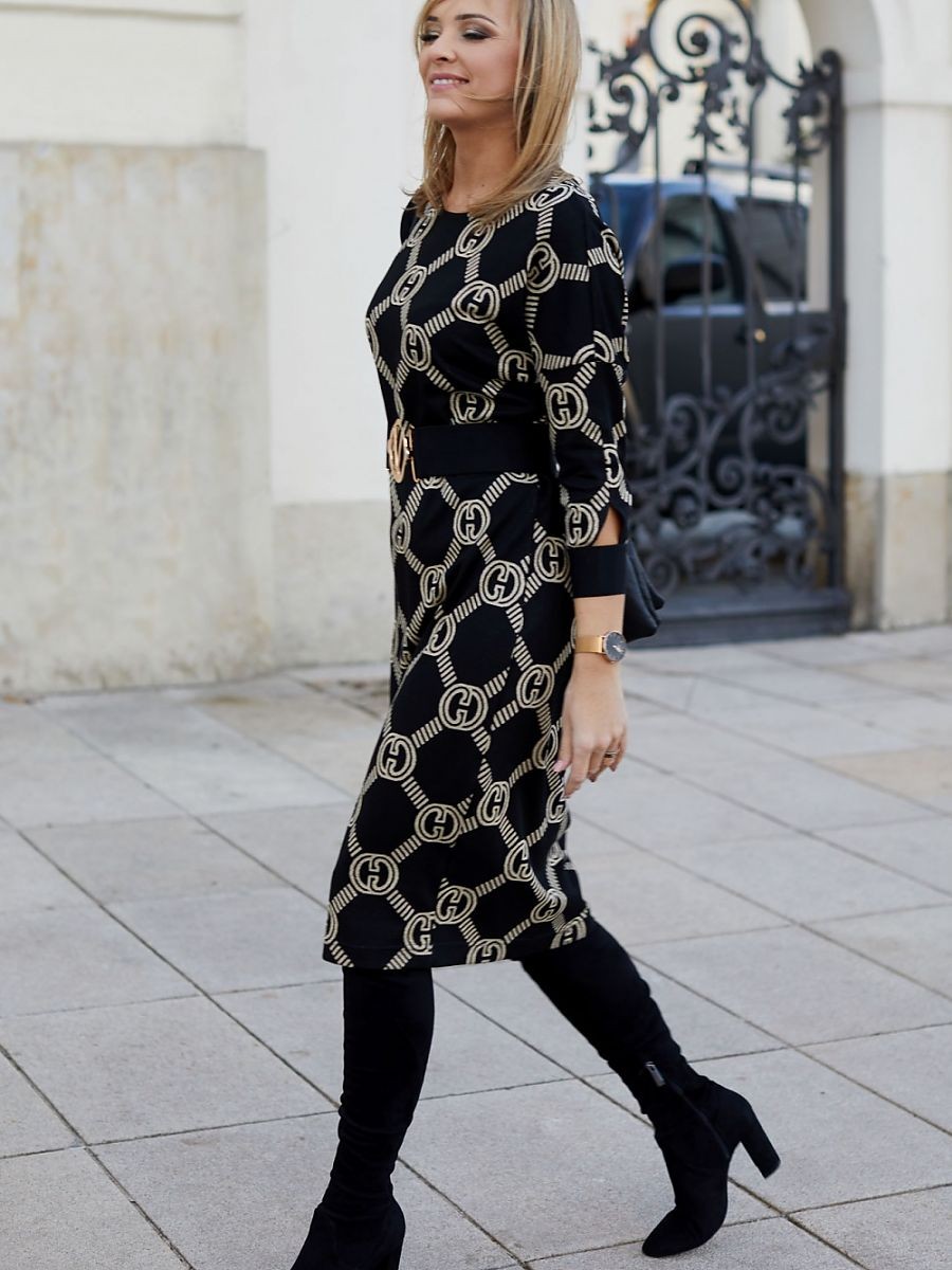 Une robe très féminine et confortable en maille jacquard avec ajout d'élasthanne. Conçu selon les principes de la marque, c'est-à-dire en pensant aux femmes mûres. Une longueur appropriée de 2-3 cm sous le genou pour une taille d'environ 166-168 cm, un haut kimono à manches tombantes, une ceinture élastique avec une grande boucle décorative pour régler le tour de taille, des couleurs discrètes et un tricot doux et maniable d'un poids d'environ 280gm2. Tout cela rend la robe idéale pour les grandes tailles.
