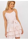 Mini robe avec bretelles en chaîne, décolleté en cœur et lien à la taille. Bas de la robe avec trois volants.