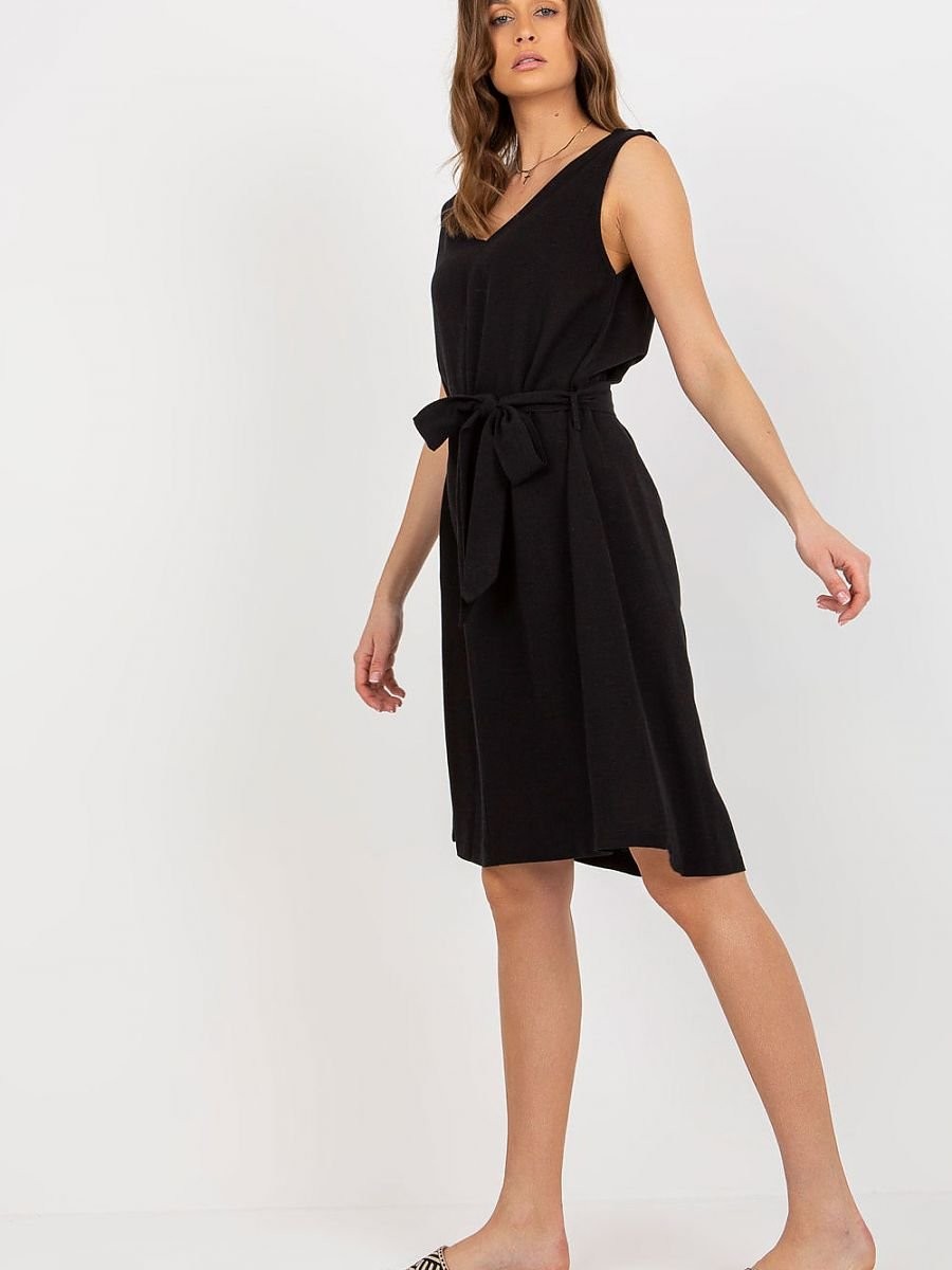 Robe d'été sans manches avec un décolleté en cœur. Ceinture à nouer à la taille.