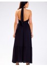 Robe en viscose naturelle agréable au toucher. Le haut de la robe est noué au niveau du cou, ce qui permet de l'ajuster parfaitement à la silhouette et à la poitrine. Le bas de la robe est long et terminé par un volant. Le dos ouvert est parfait pour la chaleur de l'été. Conçue et cousue en Pologne.