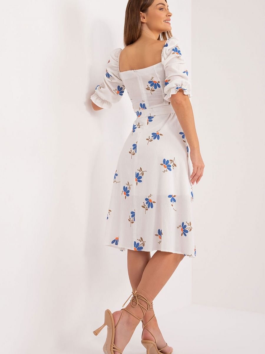 Cette robe d'été est le choix parfait pour un style de tous les jours, car elle respire la fraîcheur et la légèreté. Sa coupe évasée la rend non seulement confortable mais aussi très féminine. Fabriquée dans un tissu léger avec des fleurs imprimées, cette robe est de longueur midi, ce qui la rend adaptée à une variété d'occasions, des promenades sur la plage aux brunchs d'été. Les manches courtes et l'encolure rectangulaire ajoutent du charme et de la légèreté tout en permettant une grande liberté de mouvement. La fermeture à glissière couverte permet d'enfiler et d'enlever facilement la robe. De plus, la ceinture à nouer accentue la taille, donnant à la silhouette une forme féminine. La manche à volants confère à la robe un charme romantique, soulignant l'atmosphère estivale. La doublure est également très pratique, car elle apporte confort et protection supplémentaire. Vous vous sentirez à la fois féminine et décontractée dans cette robe, prête à vivre des aventures estivales tous les jours.