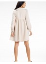 Mini robe à col montant et encolure profonde. Elle a des manches longues avec des poignets fermés par des boutons-pression. Le modèle est légèrement ajusté en haut et évasé en bas. Idéale pour les baptêmes, les anniversaires ou les sorties.