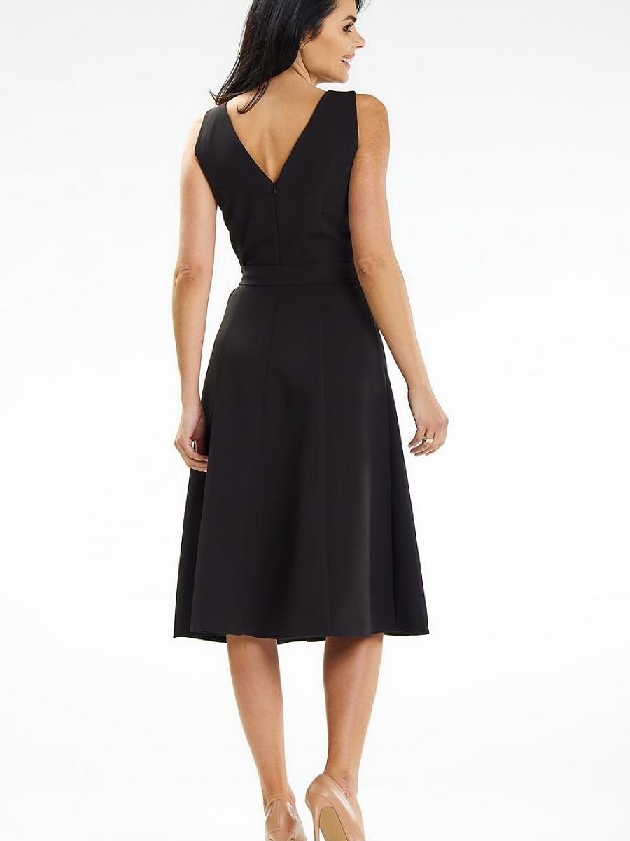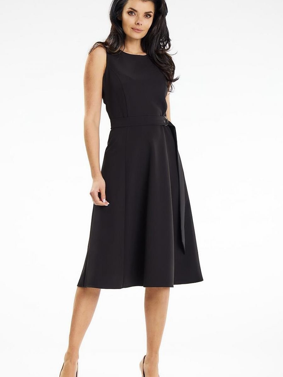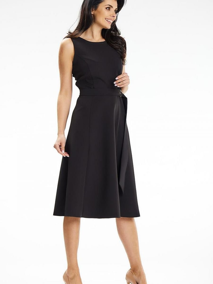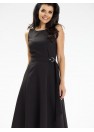 Élégante robe midi sans bretelles à encolure bateau. Le haut de la robe est ajusté, tandis que le bas est légèrement évasé. Une ceinture à la taille ajoute à l'élégance de la robe. La robe se ferme à l'aide d'une fermeture éclair dissimulée. Idéale pour de nombreuses occasions, notamment les anniversaires, les réunions entre amis et les sorties au théâtre. Fabriquée en Pologne.
