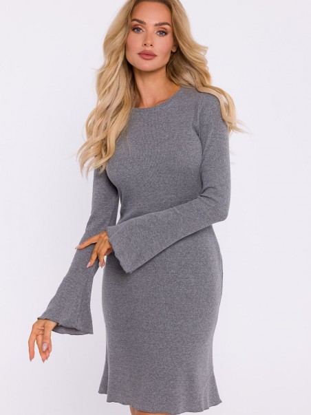 Confectionnée en maille de coton côtelée, cette robe à manches longues s'adapte parfaitement à la silhouette, soulignant les formes en sablier. Sa coupe classique assure un ajustement confortable, tandis que la garniture décorative sur le bas ajoute une élégance subtile à la robe. Portée sur la tête, elle est pratique et confortable, et sa longueur au genou permet de l'utiliser aussi bien au quotidien que pour des occasions plus formelles. La robe a été conçue et cousue en Pologne, ce qui garantit une grande qualité et un travail soigné.