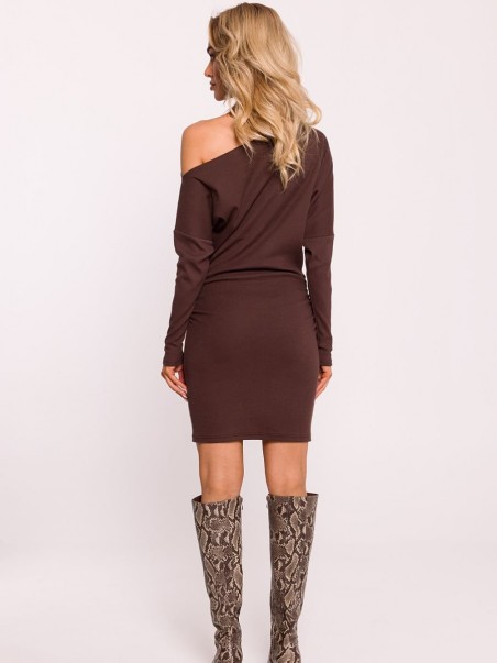 Cette élégante mini robe en tricot de coton côtelé allie design moderne et confort. Sa coupe ajustée met joliment en valeur la silhouette, tandis que la conception sur les épaules assure une grande facilité de port. La robe se distingue par le pli sur le côté, qui ajoute de l'originalité et permet au haut d'être légèrement ample pour un look plus décontracté et légèrement nonchalant. Les manches longues et l'encolure tombant sur une épaule créent un effet sensuel et asymétrique. Conçu et cousu en Pologne, il garantit des matériaux et une exécution de la plus haute qualité. Idéal pour les occasions spéciales et le style de tous les jours.