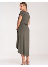 Robe asymétrique à encolure superposée et manches courtes. Robe avec un lien à la taille. Idéale pour de nombreuses occasions.
