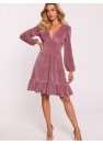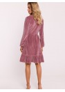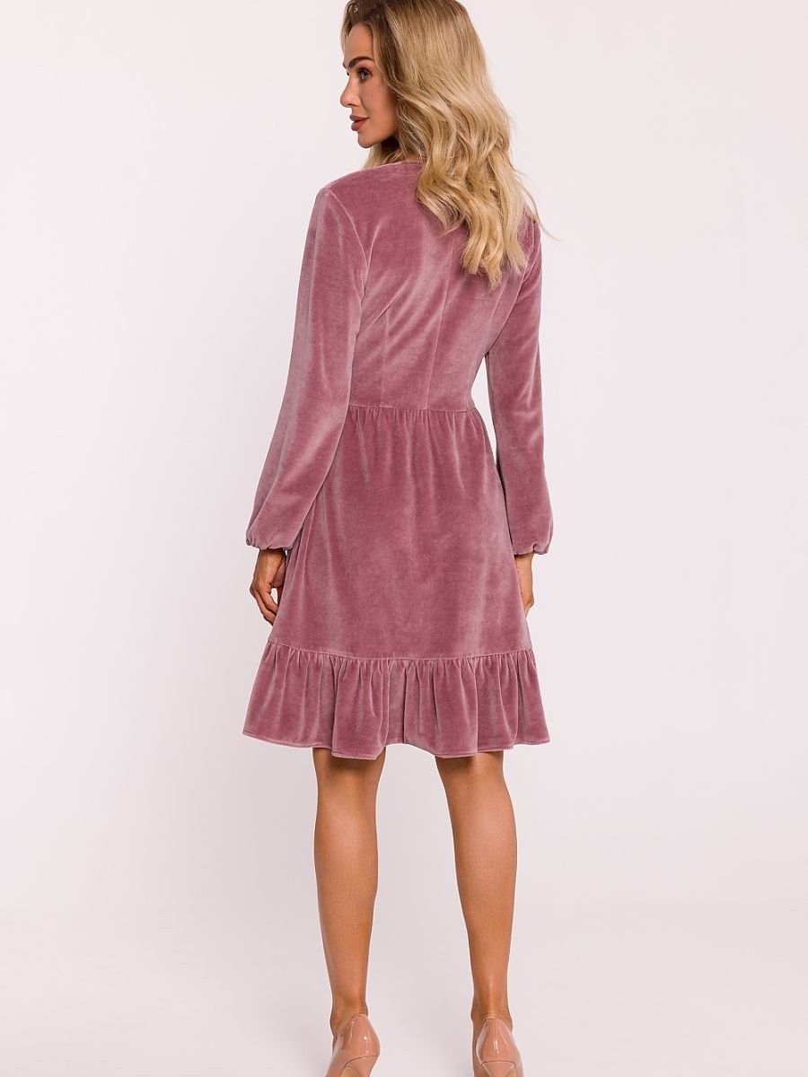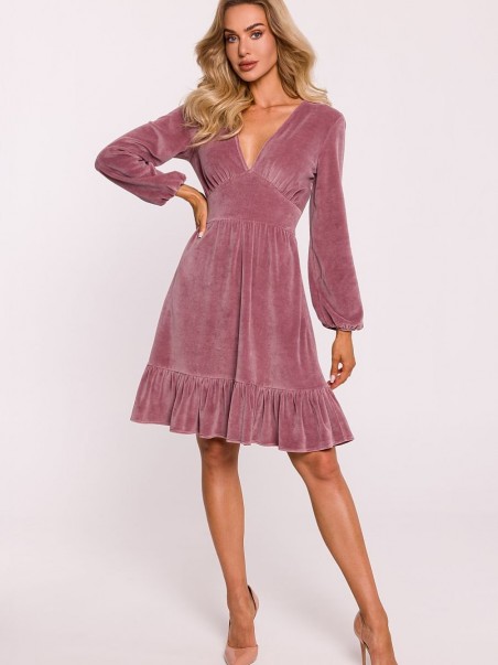 Une robe élégante en tricot de velours doux qui allie élégance et confort. Un modèle avec une taille soulignée qui expose joliment la silhouette féminine, et un profond décolleté en V qui ajoute de la sensualité à l'ensemble. Les longues manches buffet terminées par un élastique confèrent à la robe un caractère romantique et léger. Le bas de la robe est légèrement évasé et terminé par un volant, ce qui introduit un mouvement subtil et de l'élégance, et la longueur sous le genou la rend idéale pour de nombreuses occasions. Une fermeture éclair dissimulée sur le côté permet une fermeture pratique, tandis que l'absence de doublure rend la robe légère et agréable à porter. Conçue et cousue en Pologne, cette robe est le choix idéal pour les femmes qui souhaitent combiner un look à la mode et le confort pour tous les jours et les événements spéciaux.