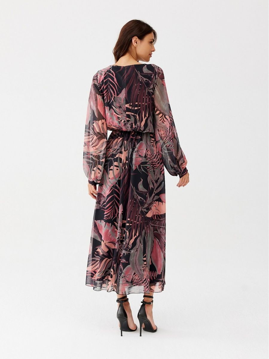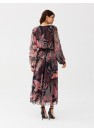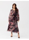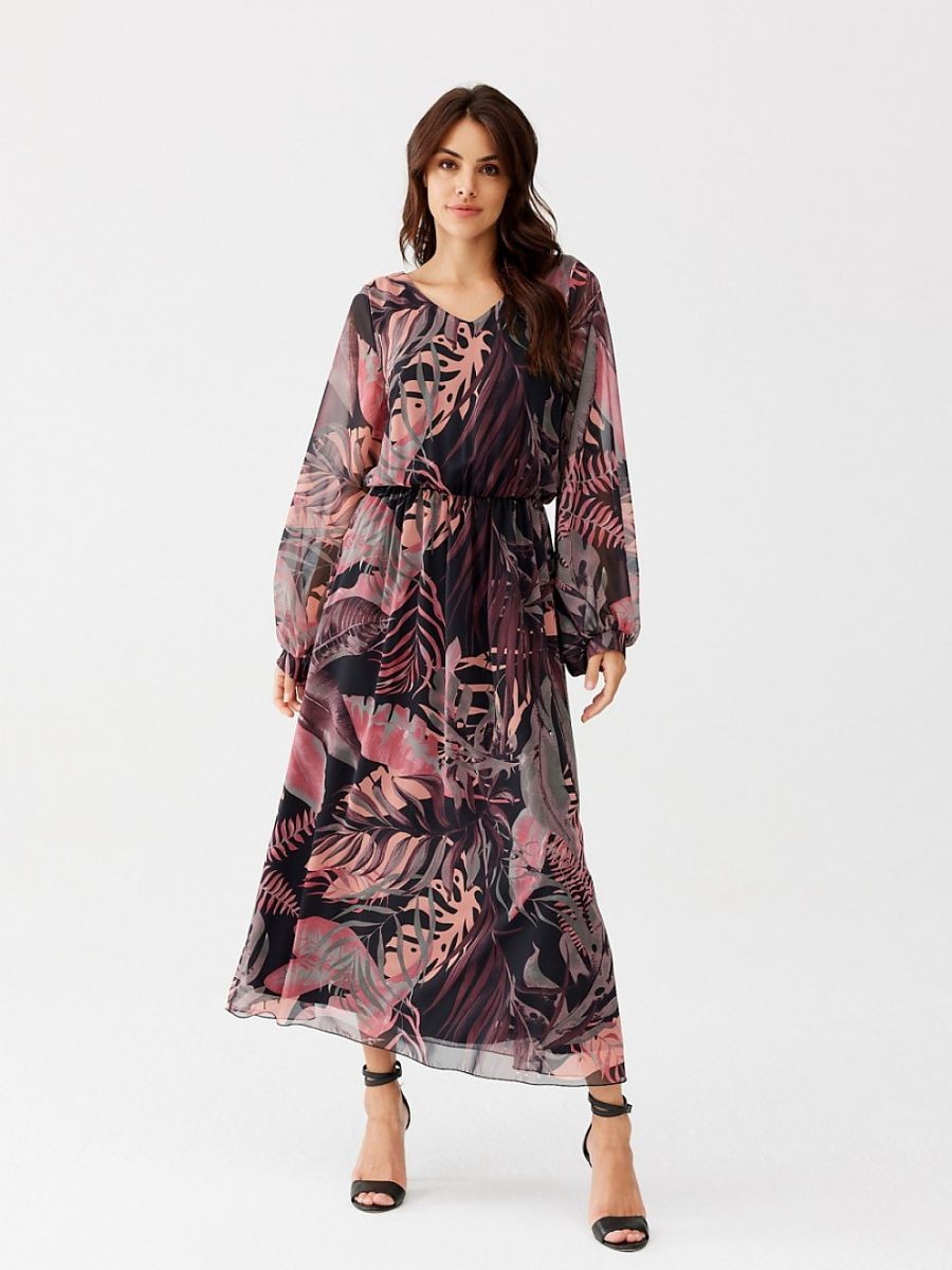Ariela est une robe longue en mousseline de soie qui coule merveilleusement bien. Les motifs intéressants ajoutent à son originalité et à son caractère unique. La robe est dotée de longues manches semi-transparentes qui créent un effet de buffet. L'encolure en V met joliment en valeur le décolleté et l'encolure, tandis que la ceinture élastique cousue garantit un effet sablier. La robe est doublée pour éviter qu'elle ne transparaisse. La robe Ariela est le choix idéal pour de nombreuses occasions. Avec les bons accessoires, cette création est parfaite pour les sorties formelles et décontractées. La longue robe à motifs Ariela s'associe parfaitement à des bottes en daim noir et à un petit sac à bandoulière. Le produit est fabriqué et cousu en Pologne.