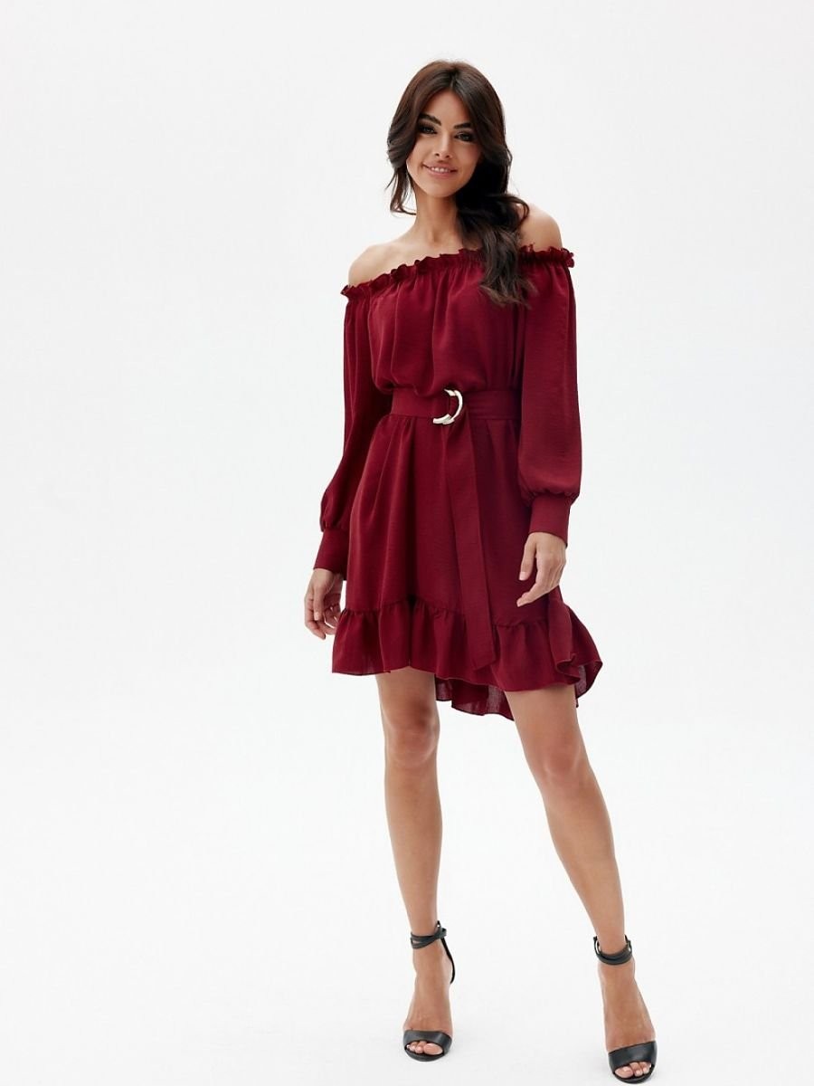 La robe coupe trapèze avec ceinture réglable est une création élégante et aérienne qui impressionne par la légèreté de ses larges manches terminées par un revers. Son charme girly est accentué par le volant, qui lui confère une légèreté unique. Le modèle présente une belle encolure espagnole et des manches longues, qui restent parfaitement en place grâce aux bandes élastiques aux épaules. Le bas de la robe est décoré d'un élégant volant, et la coupe ample garantit un ajustement confortable. Grâce à sa coupe décontractée, elle épouse parfaitement la silhouette et assure un confort total. Idéale pour toutes les occasions et pour un style quotidien, la robe est également parfaite pour les vacances. Sa polyvalence permet de la combiner librement avec de nombreux accessoires. Le produit est fabriqué et cousu en Pologne.