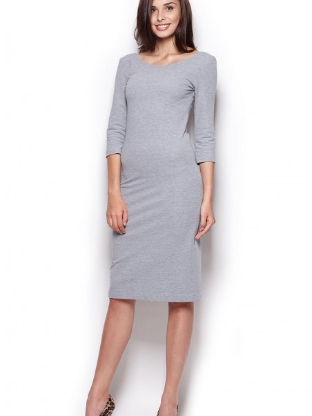 l'habillement des femmes classiques. - Coupe ajustée - La longueur midi - Manches 3/4 - Encolure bateau - Adapté à la silhouette - Le dos de l'encolure profonde tentant - Robe en tissu élastique - Il ressemble beaucoup sur le corps