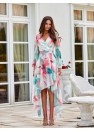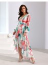 Robe asymétrique longue maxi. Jupe évasée, haut avec décolleté croisé et incroyables manches bouffantes longues avec fentes décoratives. Manches terminées par un élastique. Robe cintrée à la taille, soulignant parfaitement la région de la taille. Fermeture à glissière à l'arrière avec une légère exposition du dos. La robe a une doublure cousue, de sorte que le tissu ne sera pas transparent. Juste des bijoux délicats, et vous ravirez tout le monde autour de vous. La coupe et la longueur seront parfaites pour toutes les morphologies, donnant de la légèreté à la silhouette et ajoutant visuellement quelques centimètres de longueur. Le tissu aérien et délicat ondulera légèrement à chacun de vos mouvements, laissant une impression inoubliable. Le produit est fabriqué et cousu en Pologne.