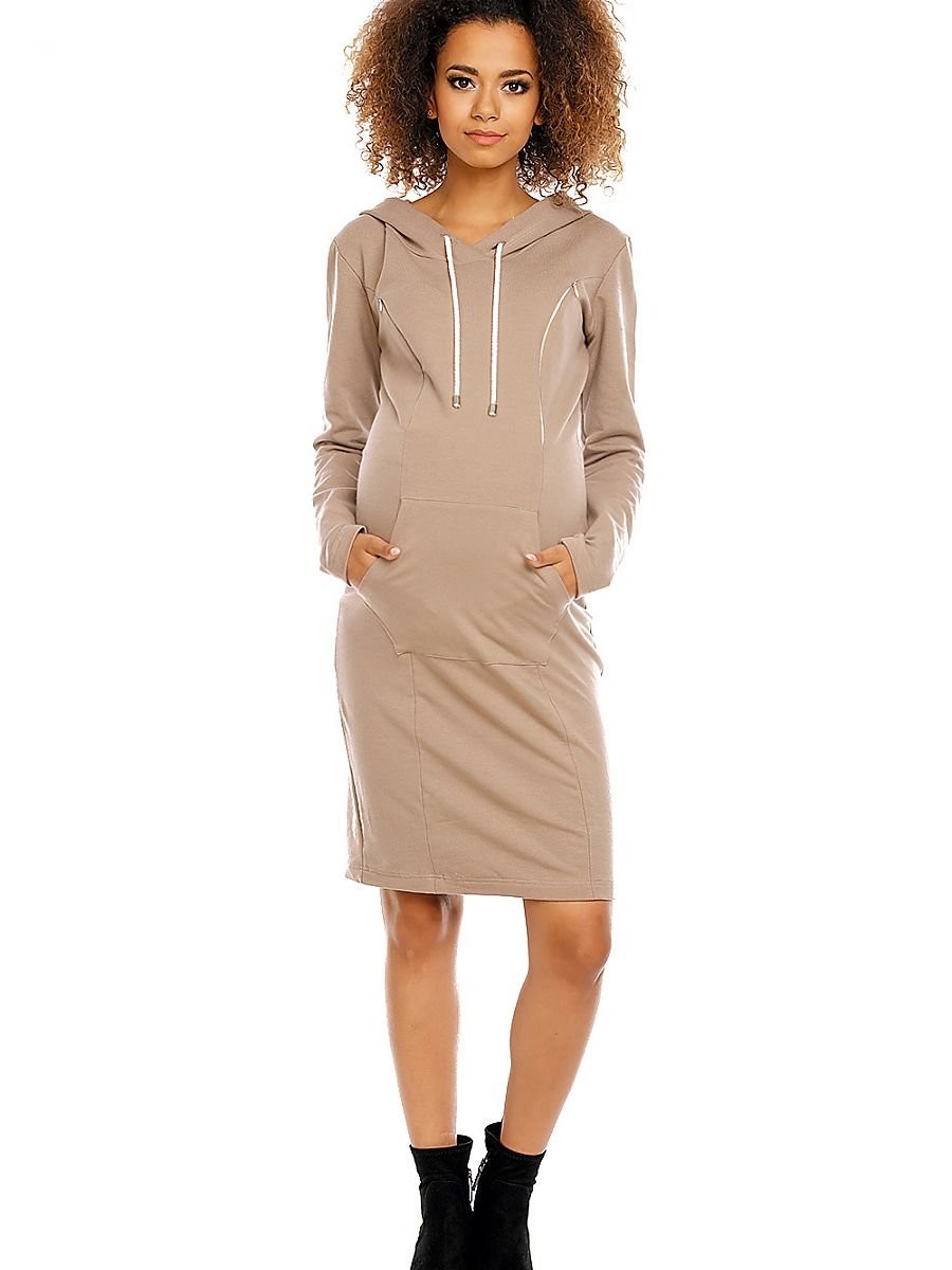 Robe originale et fonctionnelle pour les femmes enceintes et allaitantes. Robe avec capuche en coton agréable au toucher et confortable. Fermetures éclair verticales des deux côtés au niveau du buste pour faciliter l'allaitement. Poche pratique "kangourou" au milieu. La robe est également idéale pour un usage quotidien après l'allaitement. Dimensions mesurées à plat.