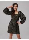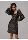Mini robe à paillettes avec manches buffle. Fermeture éclair dans le dos. Production polonaise.