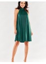 Robe courte et évasée avec un pli décoratif à l'encolure, sur un col boutonné. La robe est cousue sur une doublure élastique. Robe fabriquée en Pologne.